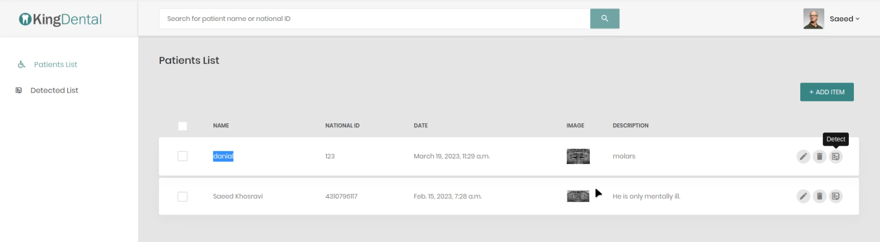 Implemented a panel for dentists to set patients records and X-rays images, and used an AI model to detect decayed and damaged teeth or teeth that may be at risk of future decay of patients and reports these findings to the dentist so they can provide the necessary care.
