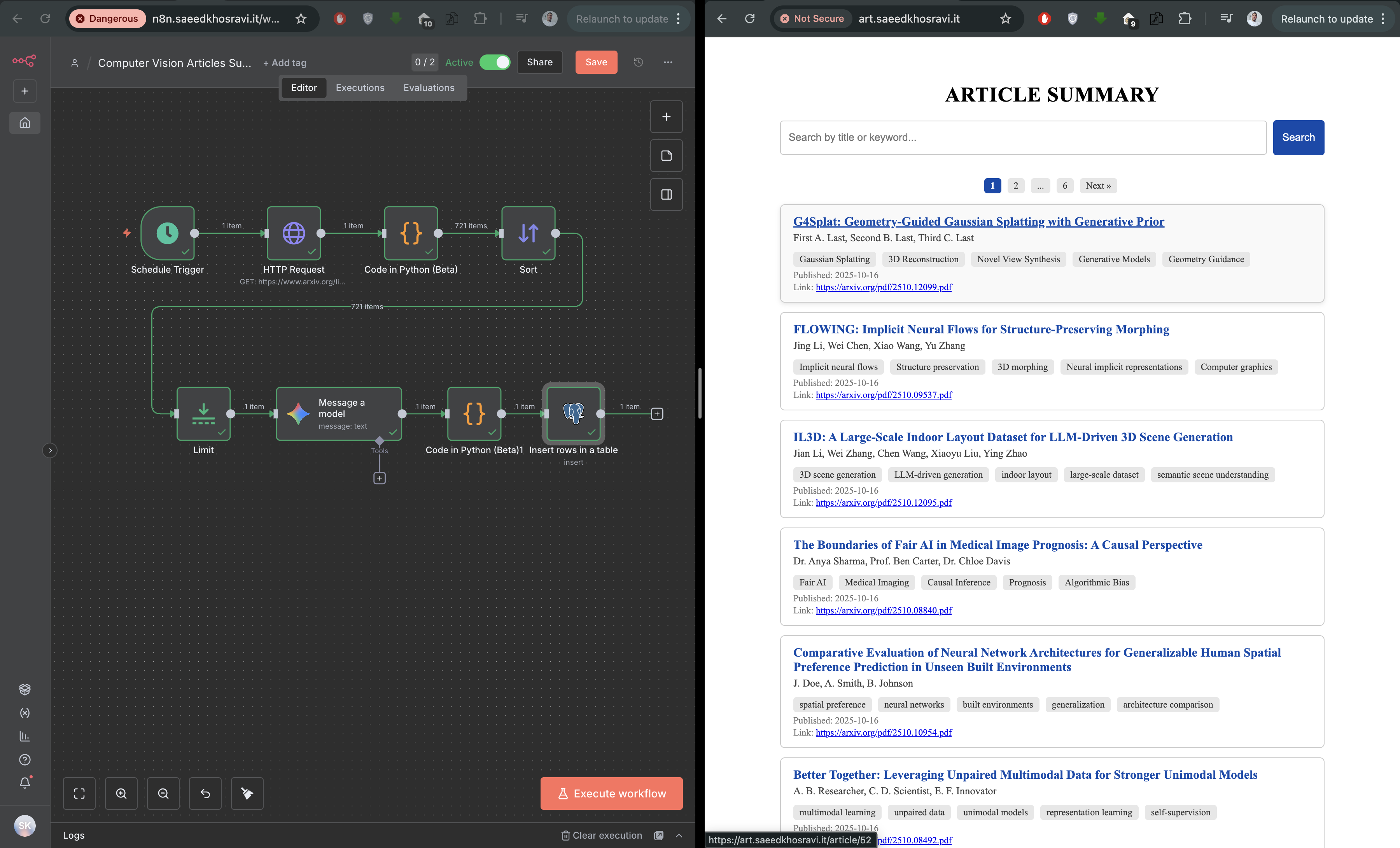 I started to read new articles on a daily basis. I made an automation using n8n, Google Gemini, Postgres, and a website using Fast-API that made this more productive, and time efficient. I would appreciate if you check it out and give me feedback, to make it better. If you are interested in using n8n automation, contact me to launch one for you. ;)