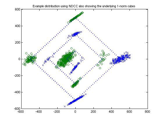 NORMALLY DISTRIBUTED CUBIC CLUSTERS is a data generator. It generates a series of random centers for multivariate normal distributions. NDC randomly generates a fraction of data for each center, i.e. what fraction of data points will come from this center. NDC randomly generates a separating plane. Based on this plane, classes for are chosen for each center. NDC then randomly generates the points from the distributions. NDC can increase inseparability by increasing variances of distributions. A measure of "true" separability is obtained by looking at how many points end up on the wrong side of the separating plane. All values are taken as integers for simplicity.